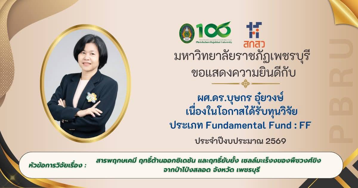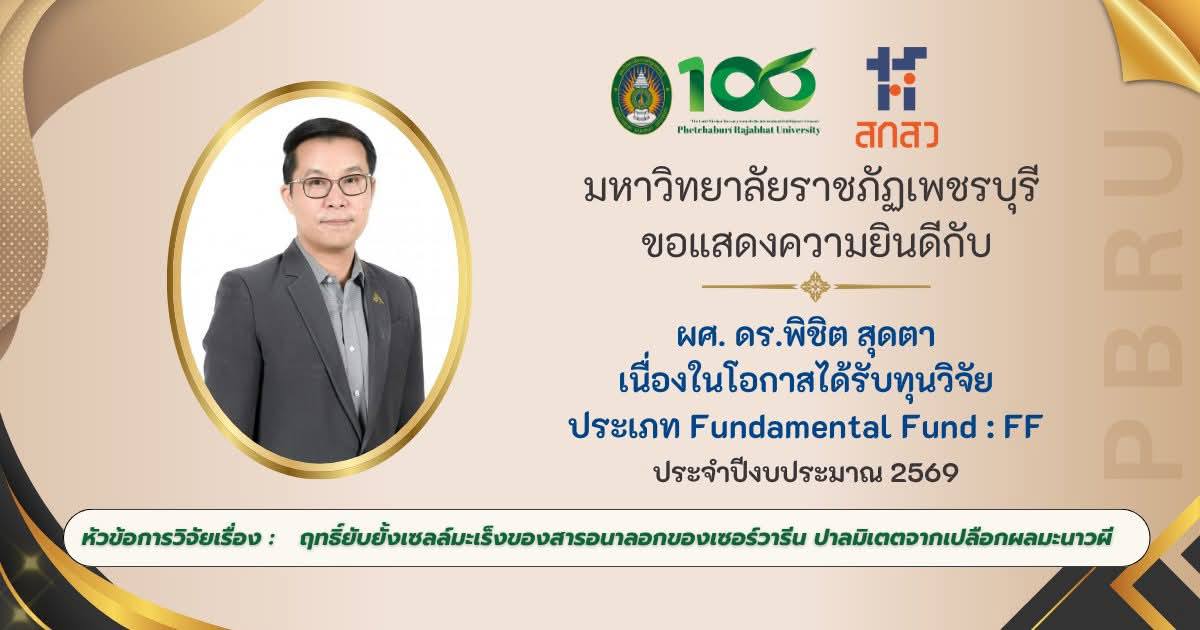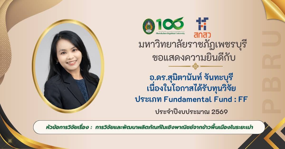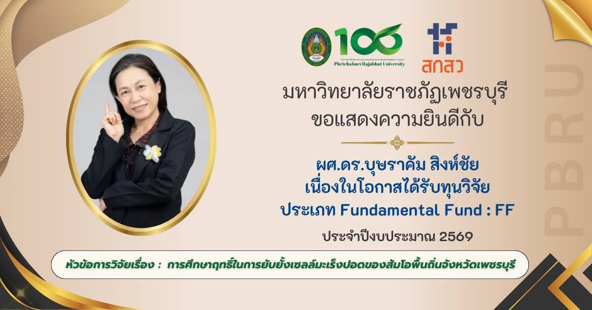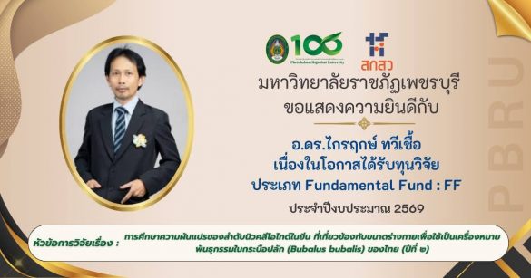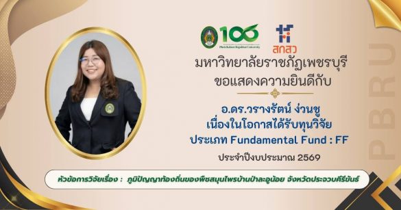 คณะวิทยาศาสตร์และเทคโนโลยี ขอแสดงความยินดี กับนักวิจัย ทุกท่าน ในโอกาสได้รับทุนวิจัยประเภท Fundamental Fund :FF ประจำปีงบประมาณ 2569 จำนวน 15 ท่าน ประกอบด้วย