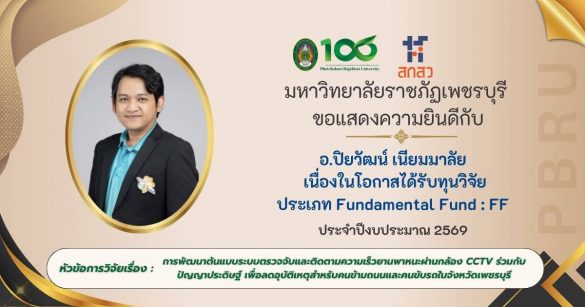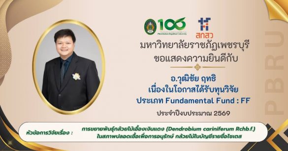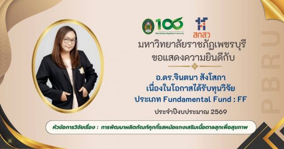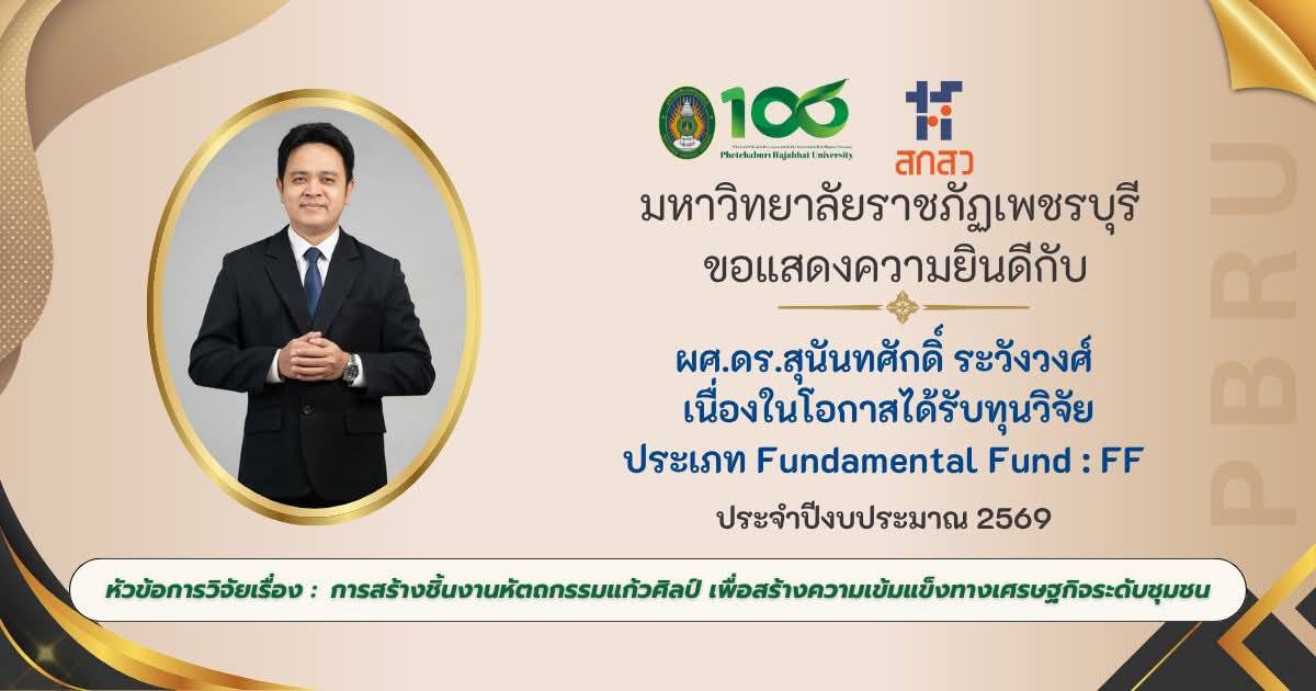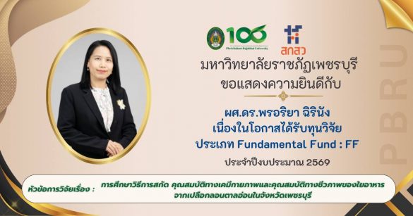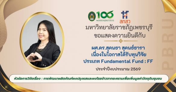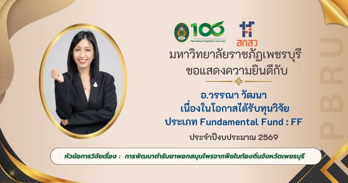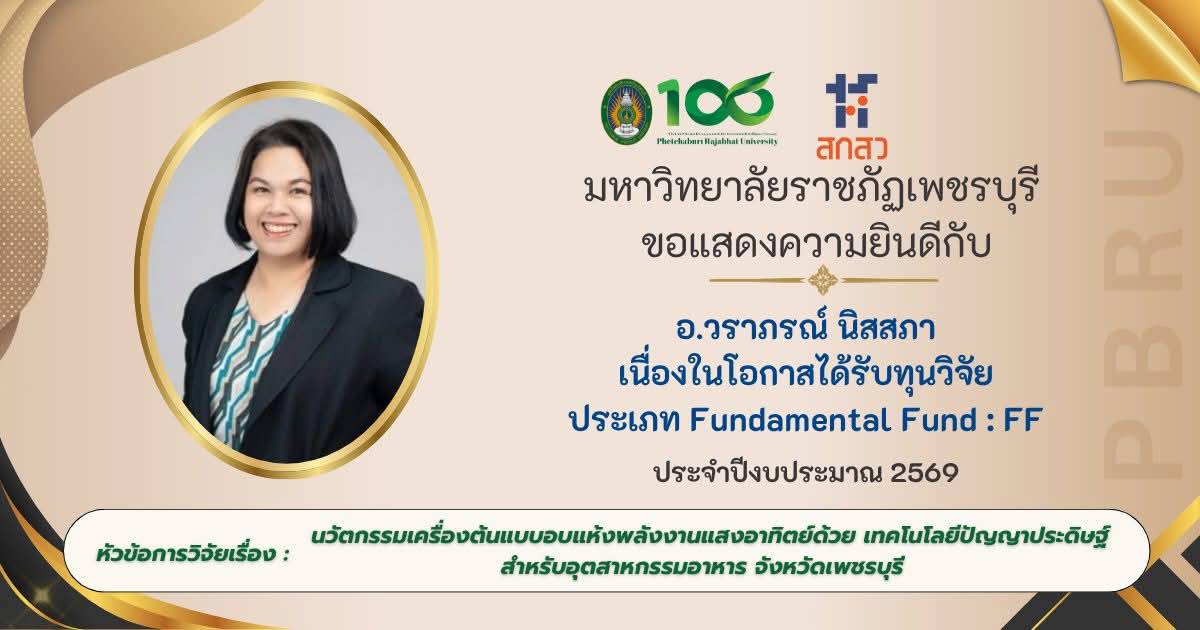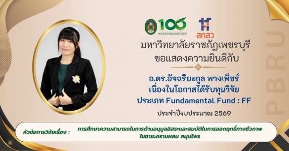 คณะวิทยาศาสตร์และเทคโนโลยี ขอแสดงความยินดี กับนักวิจัย ทุกท่าน ในโอกาสได้รับทุนวิจัยประเภท Fundamental Fund :FF ประจำปีงบประมาณ 2569 จำนวน 15 ท่าน ประกอบด้วย