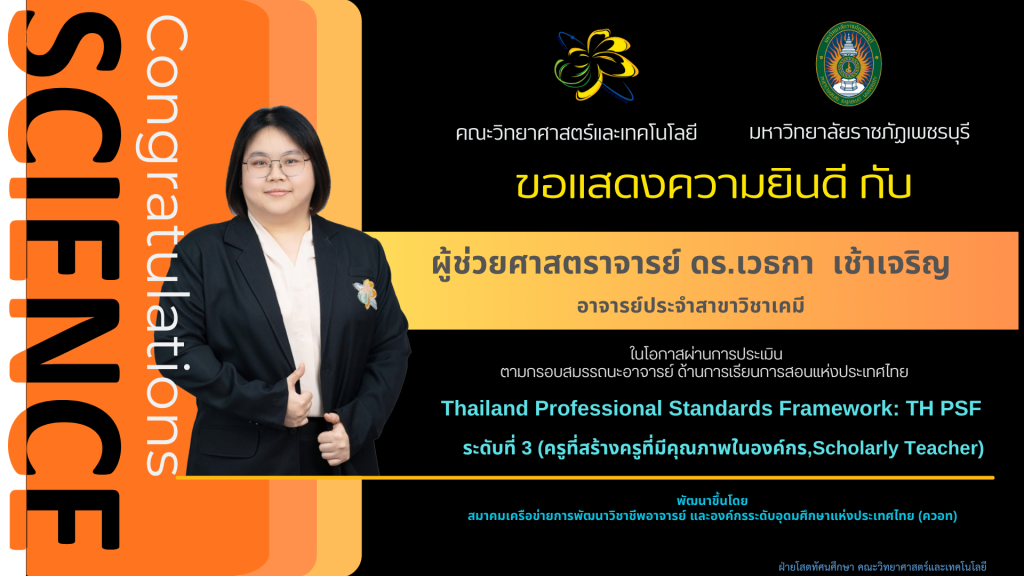 คณะวิทยาศาสตร์ฯ ขอแสดงความยินดี กับ บุคลากรสายวิชาการ ผ่าน การประเมินตามกรอบสมรรถนะอาจารย์ด้านการเรียนการสอนแห่งประเทศไทย (Thailand Professional Standards Framework: TH PSF) ระดับที่ 3